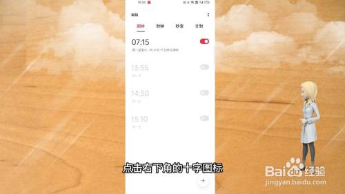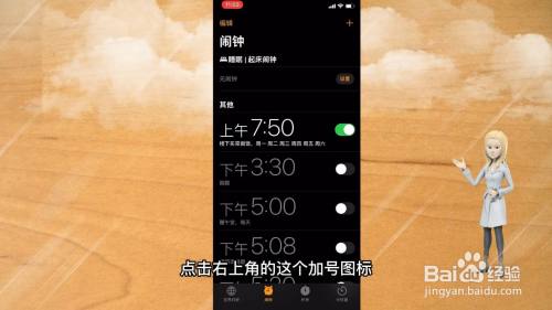 点击右上角的加号图标,设置闹钟时候以及是否反复等。