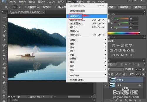 点击滤镜菜单,在打开的下拉菜单中点击滤镜库;
