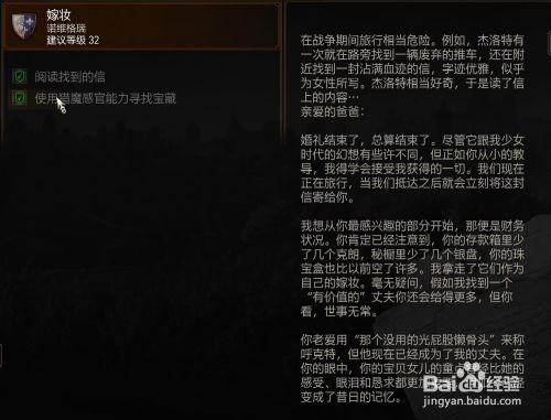 工具/原料SwitchLiteSwitch11巫师31.3.1方式/步骤1使命触发在威伦 白鹰堡上方的海滩2在海滩上可以发现良多水鬼3击杀后调查死尸 可以搜刮到一封信 阅读后触发使命4阅读后天上会飞下一只石化蜥蜴5击杀怪物后 在四周的木船的后面找到宝箱 打开就可以完当作使命END