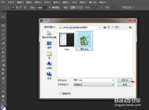 第二步:在弹出的对话框中,选择一张需要抠出外形的图片,单击打开按钮。