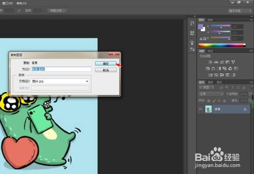 第三步:选中图层,单击鼠标右键选择复制图层,在弹出的对话框中,单击确定按钮。
