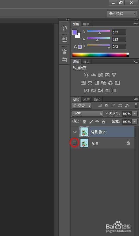 第四步:如下图所示,复制出一个布景图层,封闭布景图层。