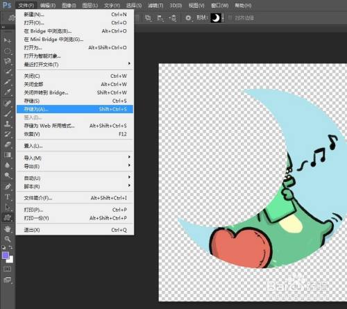 第十一步:选择菜单栏中的“文件--存储为”,将抠好的外形存储为png格局。