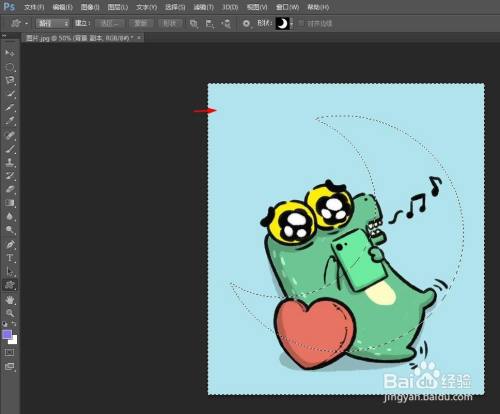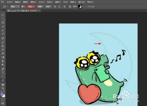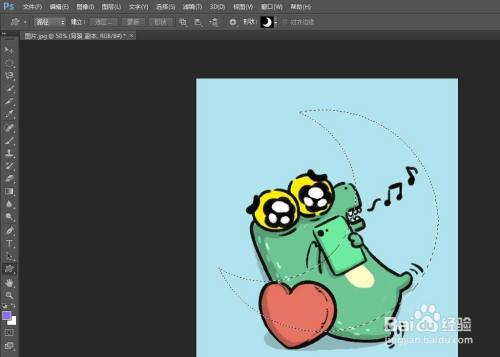 第七步:在图片中,按住鼠标左键形当作适才选择的外形,单击上方东西栏中的“选区”按钮。