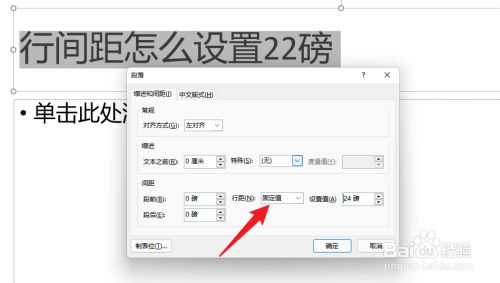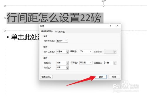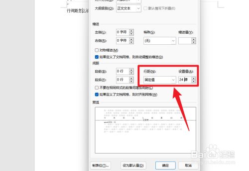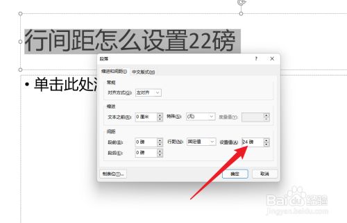 设置行距为固定值24磅。