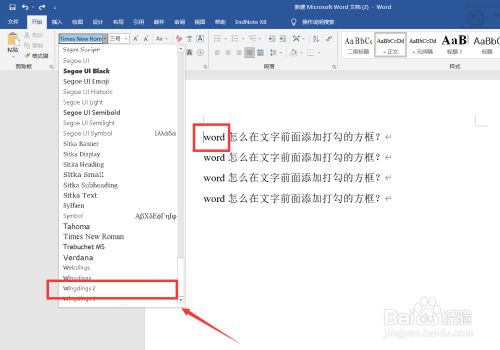 我们将光标定位在需要输入的位置上,然后点击【字体】,鄙人拉菜单中找到【wedding2】字体,选择该字体。