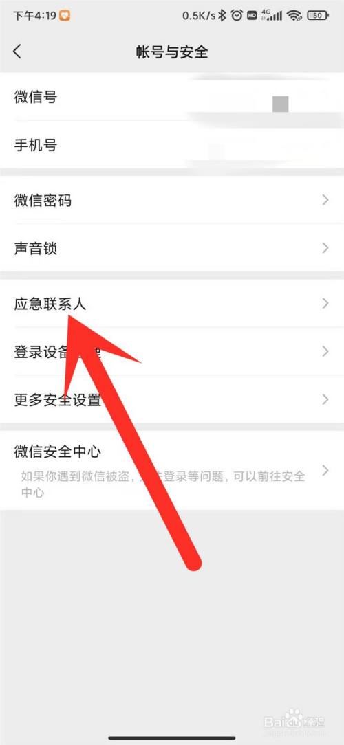 我们在账号与平安界面,找到应急联系人,点击应急联系人。