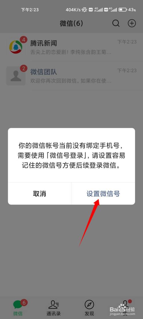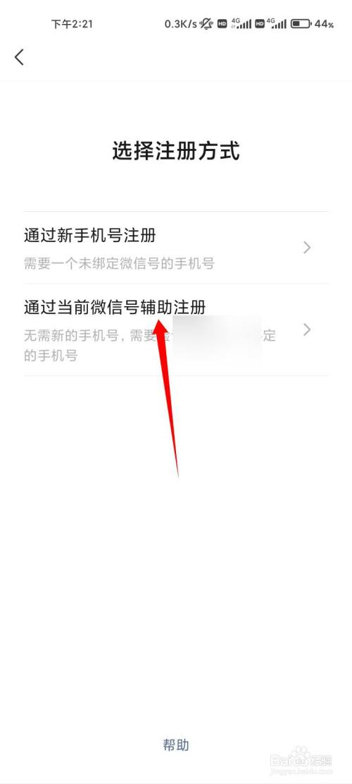 点击经由过程当前微旌旗灯号辅助注册的选项。