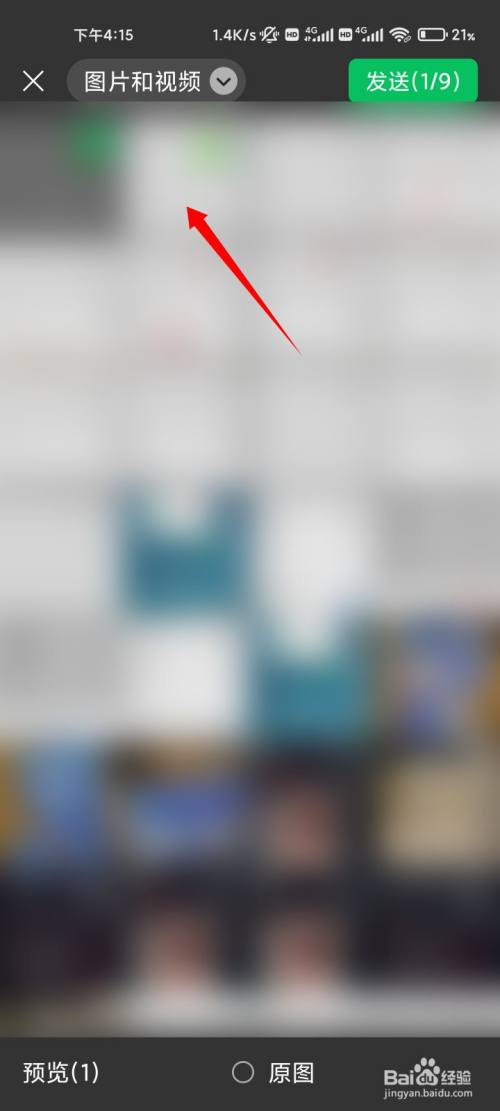 在微信老友聊天页面,依次点击加号和相册的选项。
