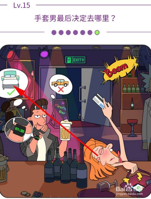 从手套男想象的两种方案中,可以看到他最后决议去酒店。