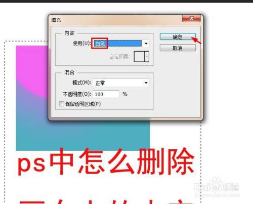 第六步:在填充内容下拉菜单中,选择“白色”,并单击“确定”按钮。
