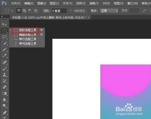第一步:打开ps软件,打开一个需要删除内容的画布。