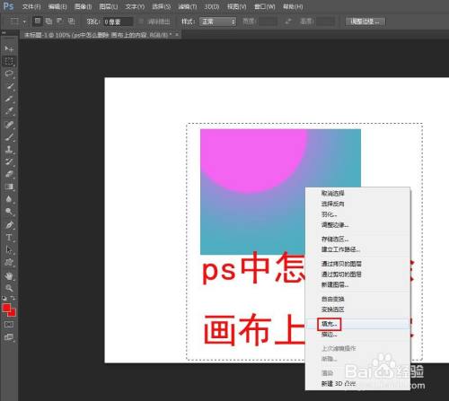 第五步:在矩形选区中,单击鼠标右键,选择“填充”选项。