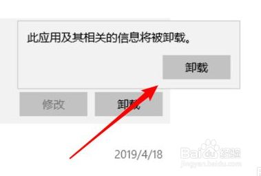点击后,会弹出一个确认窗口,再点击这个窗口上的卸载按钮。