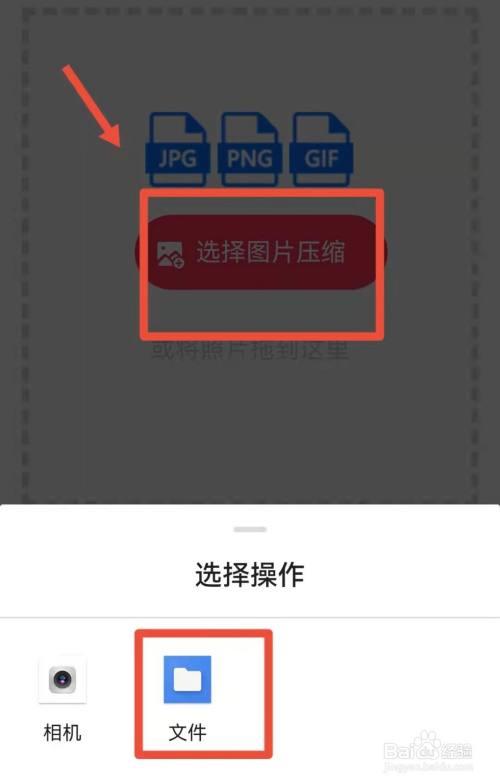 在新页面中点击选择图片,在弹出的菜单中选择文件。