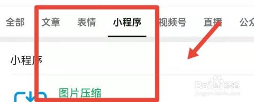 打开微信,点击上方的搜刮符号输入压缩图片,在弹出页面中点击小程序,进入图片压缩小程序。