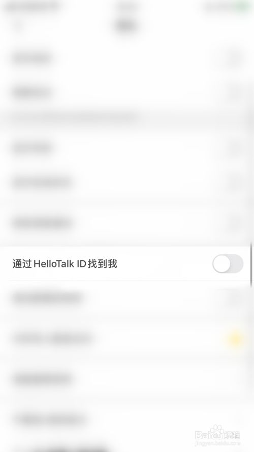 隐私设置界面点击“经由过程HelloTalk ID找到我”后面的圆点