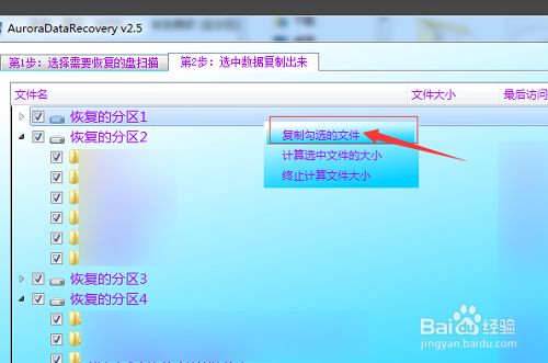 勾选需要恢复的数据,右击“复制勾选的文件”。