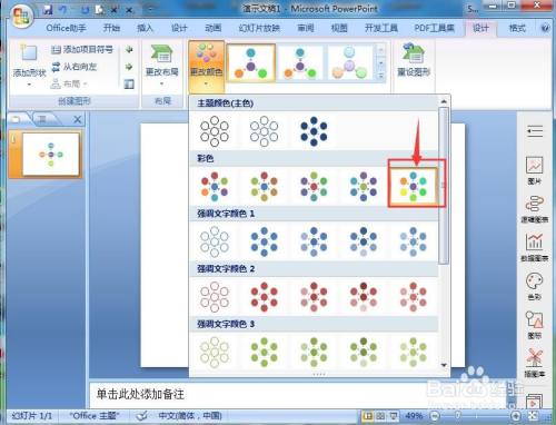点击更改颜色,选择一种彩色样式;