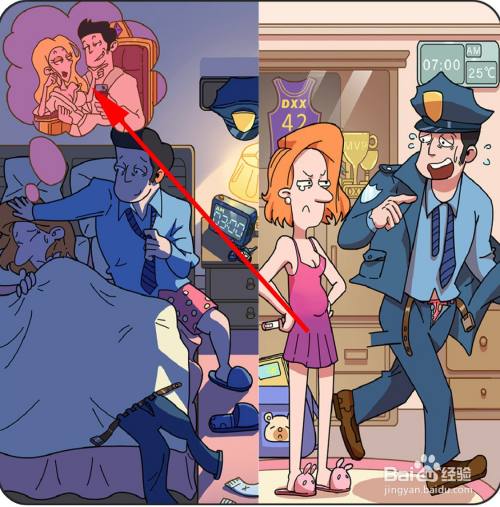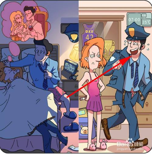 马小帅差人的职业和柜子上的闹钟显示的时候是凌晨3点,申明他又加班了,点击警帽和表。