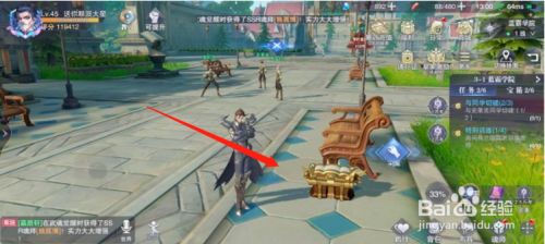 第三个【宝箱】仍是在这堆【NPC旁边的长椅处】。