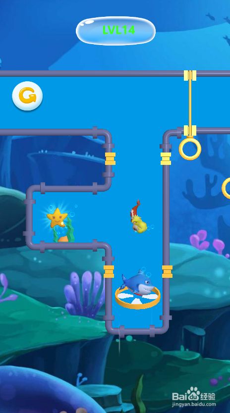 然后打开佳丽鱼右侧的插销,获得星星,如图。