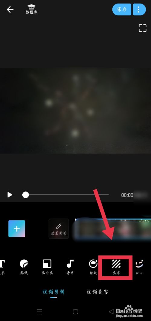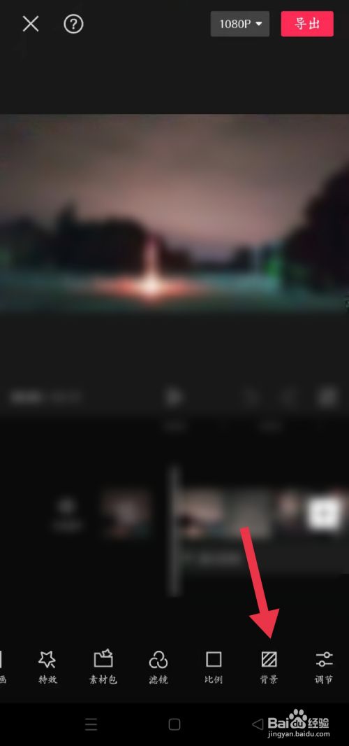 导入视频后点击东西栏布景选项打开。