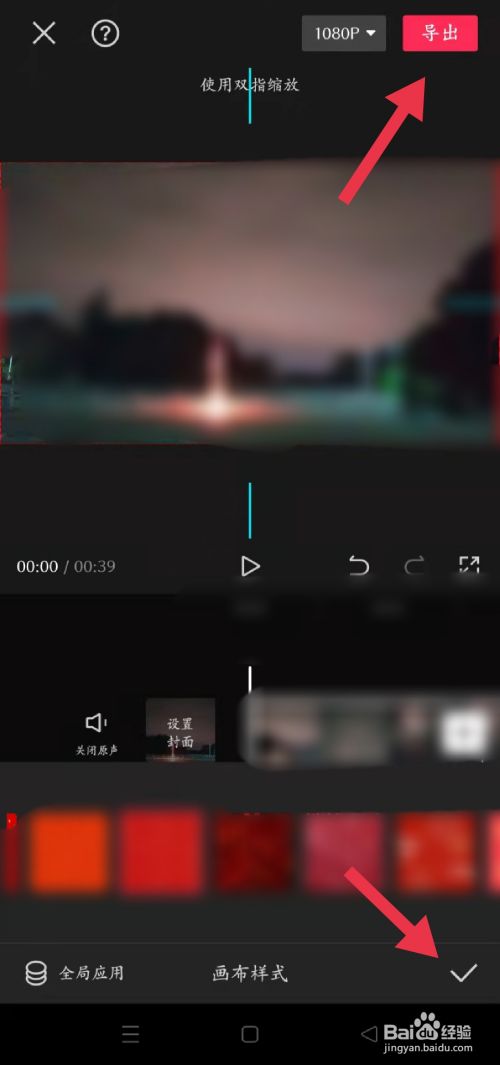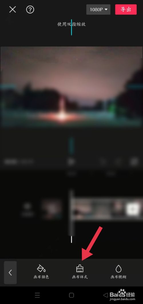 在布景中点击画布样式,选择适合的画布样式后,点击打勾并导出即可。
