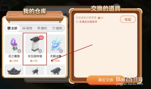再点击我的仓库里不要的家园道具进入置换,达到知足前提后,点击【确定互换】;
