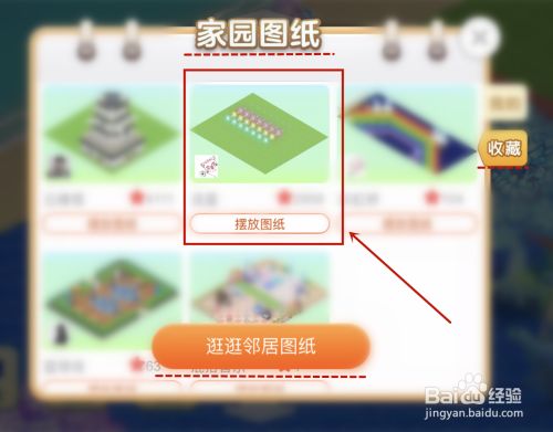 然后,点击家园图纸右边的【保藏】进入保藏的图纸中,选择有想要兑换的家园装饰道具的图纸点击【摆放图纸】,也可以选择【逛逛领取图纸】找到心仪的图纸;