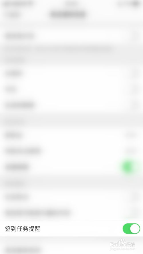 推送通知设置界面点击“签到使命提醒”后面的圆点