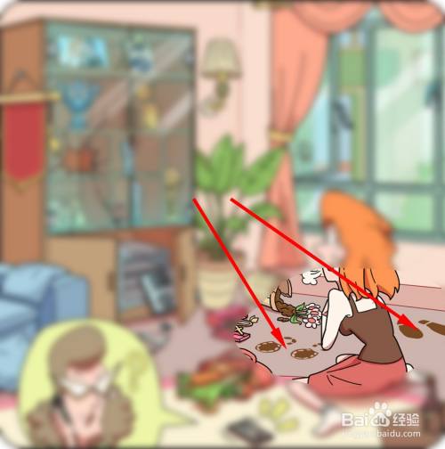 地上有2个分歧的脚印,申明进来的不止一个,点击地上的两组脚印。