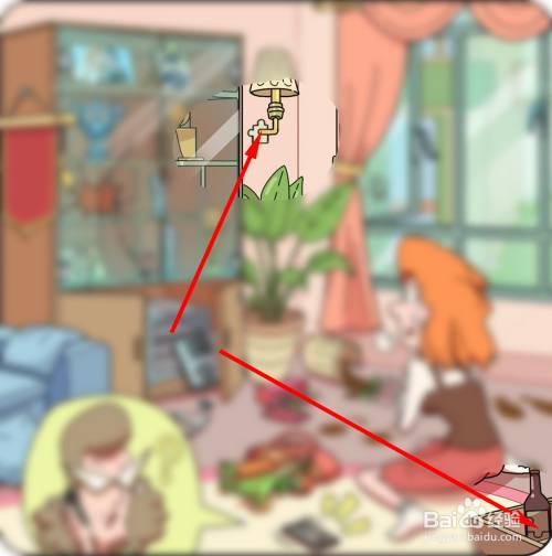 点击墙上的灯获得第一块拼图碎片,点击酒瓶获得第二块拼图碎片。