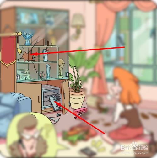 打开的保险柜和砸碎玻璃的柜子申明小偷已经到手了,点击保险箱和玻璃。