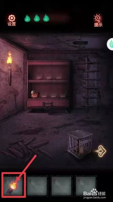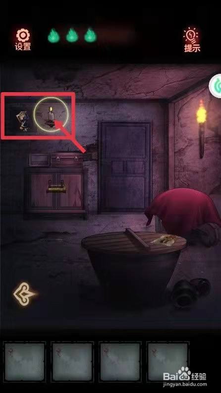 第三步,在这里找到墙上的【蜡烛】并用适才的火炬点燃