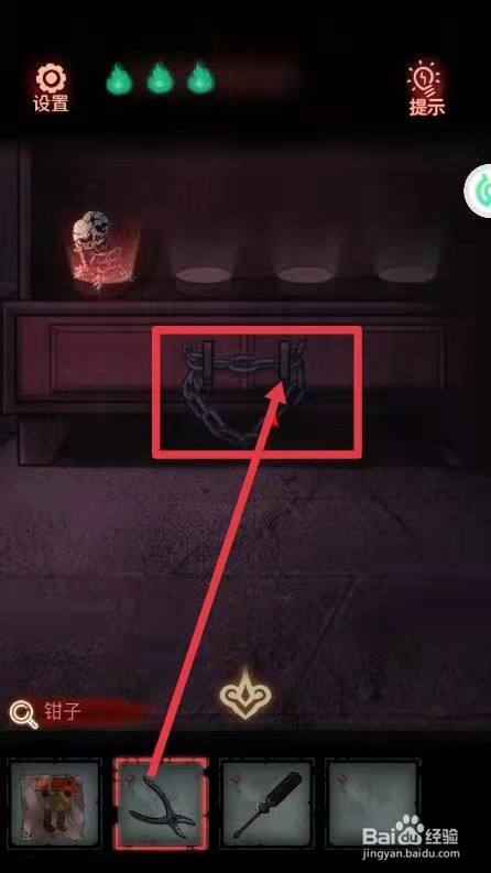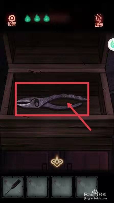 第五步,在箱子中拿到【钳子】后用钳子打开下面的柜子就可以了