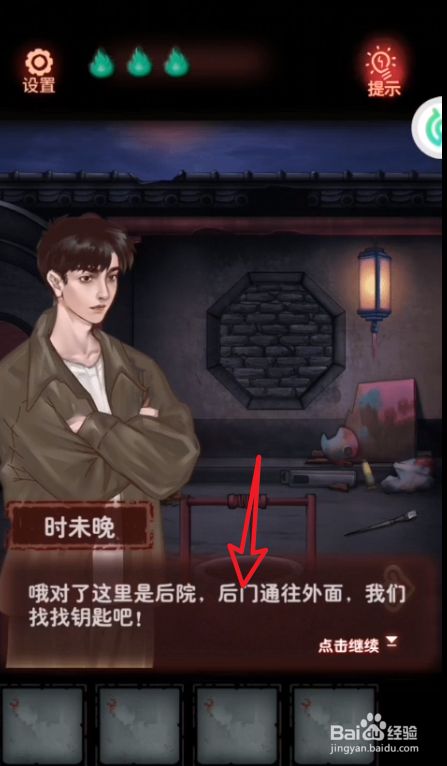 工具/原料iPhone12iOS14.4怨偶v1.0方式/步骤1打开游戏进入第三章起头走徐梦的剧情;2在走时未晚的剧情;3在院子内点击灯笼获得道具;4在假山旁边找到小铲子;5然后用小铲子把灯笼位置的地挖开即可获得一个盒子;6在盒子内找到小盒子,并按照线索输入密码打开获得一封信;7把信读完后点击箱子获得钥匙,用钥匙把大门打开就可以顺遂分开。END