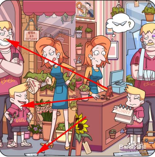 胖汉子被人教训了,熊孩子的弹弓被折断了,点击胖汉子的脸,胖汉子受伤的胳膊,熊孩子的弹弓。