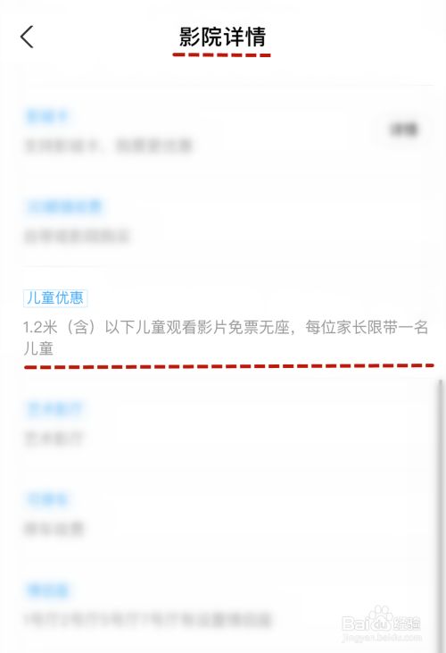 查看该影院详情儿童是否有优惠,如图:1.2米以下儿童不雅影免票,每位家长限带一名儿童,则1.2米不消买票,只需买一张成人票陪看即可。(免票不供给位置,建议家长找有较多空位的场次不雅看,这样小孩也能有位置坐)