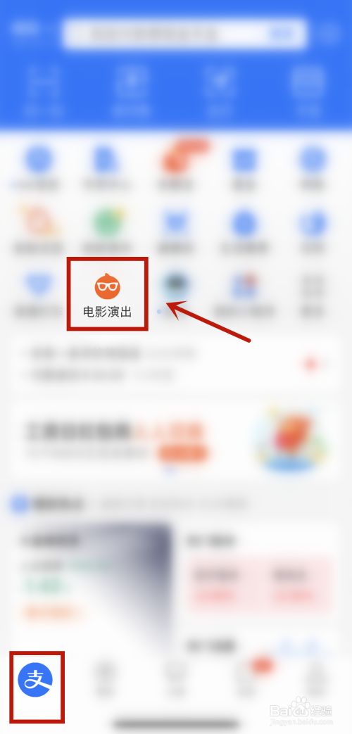 打开支付宝首页,点击【片子表演】后点【许可】获取位置;
