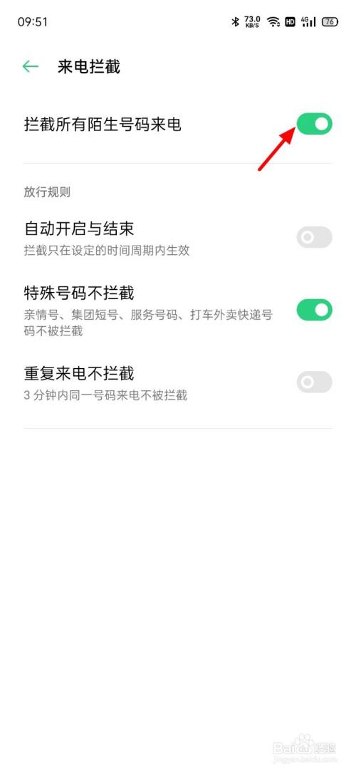 封闭阻挡所有目生号码来电,目生号码就可以打进来。