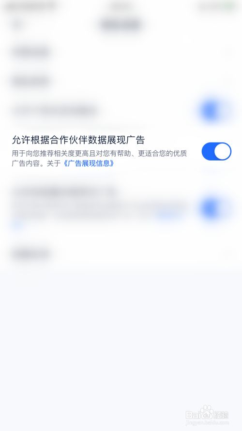 隐私设置界面点击“许可按照合作伙伴数据揭示告白”后面的圆点