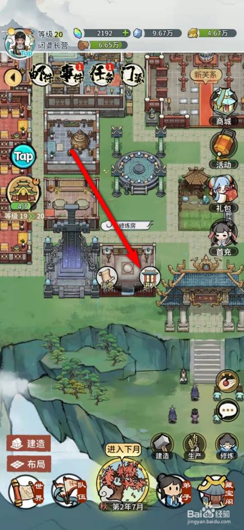 在我的门派手游,点击修炼房建筑。
