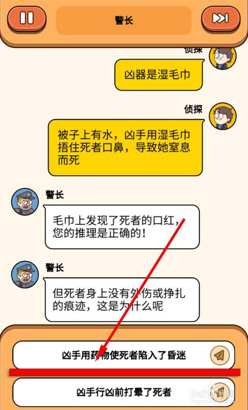 警长说大侦察的推理是准确的可是没有外伤,大侦察说【凶手用药物使死者陷入 了昏倒】