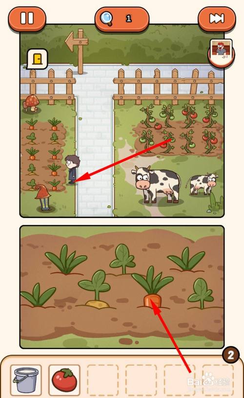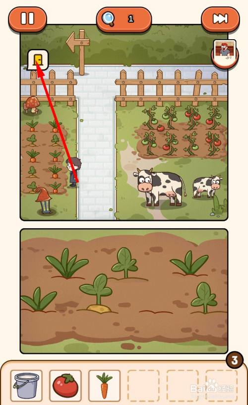 移动大侦察到胡萝卜旁边,点击将胡萝卜放到道具栏。