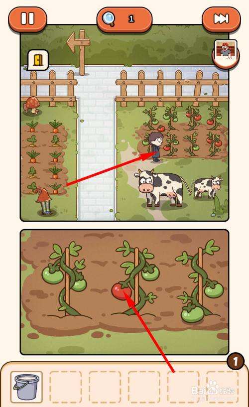 移动大侦察到西红柿旁边,点击将西红柿放到道具栏。