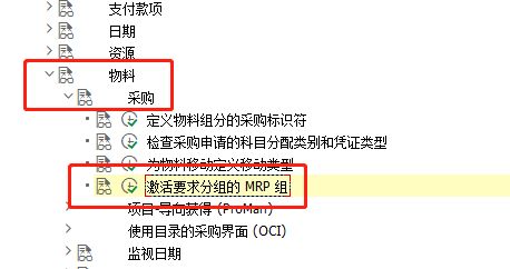 点击'项目系统',在列表中找到‘激活要求分组的MRP组’并执行