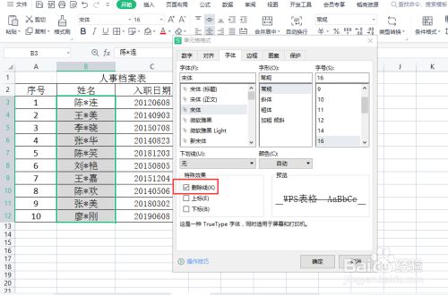 在特别结果下勾选删除线。
