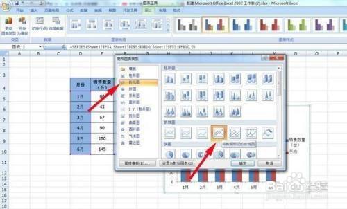 2、选中图表中的平均数,东西栏会出线图表东西,然后点击【设计】-【更改图表类型】;