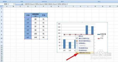 5、点击【平均数】,右键选择设置数据系列格局;